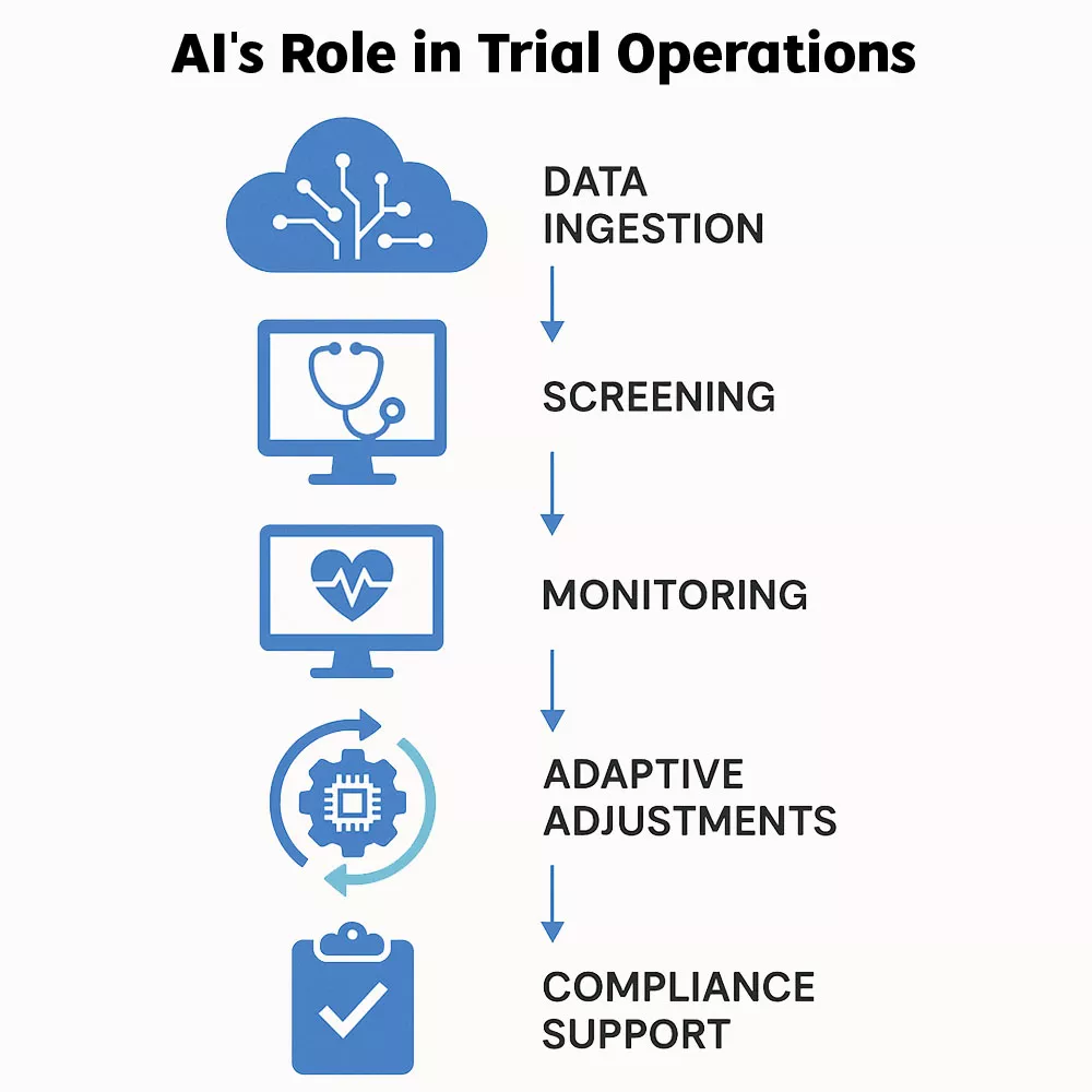 Instead of waiting for scheduled check-ins, AI can analyze incoming data from wearables, home devices, imaging, and digital diaries as it arrives. This allows teams to catch safety concerns early, identify trends, and make faster decisions.